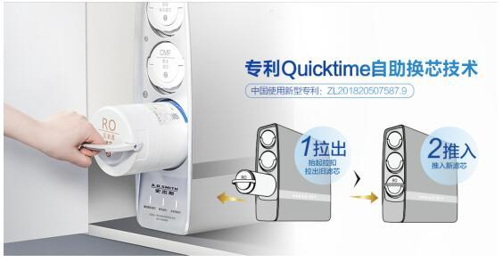 A.O.史密斯净水研发团队,创新研发专利MAX4.0自助换芯系列反渗透净水机,让现代净水机用户的便捷体验不断升级,引领净水行业发展。新品搭载专利“Quicktime”抽拉式自助换芯技术,轻抬水晶面板后,只需拉出旧滤芯,再推入新滤芯,就能轻松实现DIY自助速换,节省时间精力和上门服务的费用,一举多得。