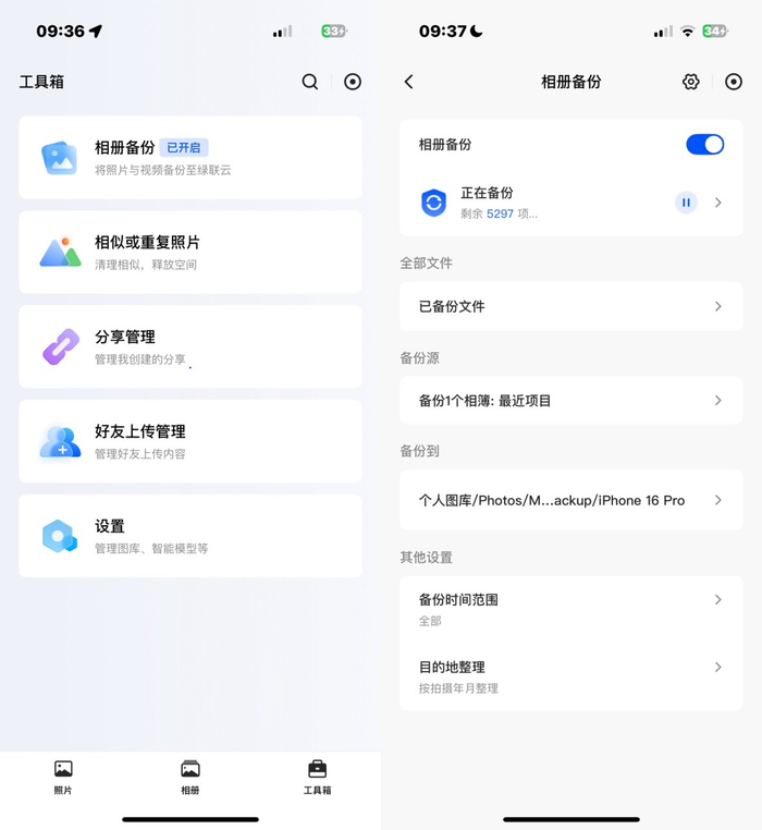 它的传输速度也超出我的预期,我俩实测了一下,传输速度能达到200MB/s左右,4K家庭旅行视频,30多秒就能从电脑传到NAS里,完全不用等半天。上次国庆全家回老家团聚,拍了好多全家福、长辈们的做饭视频、孩子们打闹的片段,都直接通过手机APP上传到NAS的共享图库里,不管是留在老家的爷爷奶奶,还是已经回到工作地的我们,只要手机上装了绿联云APP,就能随时查看。