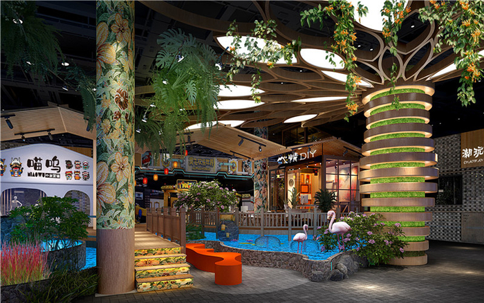 个性化美差异性美,空间设计需要艺术美商业空间设计较其它空间相比,更加强调艺术性。商业空间本身是一门把建筑、经营者、商品本身、消费者较好地融合在一起的抽象艺术,需要设计中融合正确的设计理念,予以具象形式表达出来。商业空间设计中不容忽视的特点之一便是展示性,商业空间是展示的空间,由此陈列展示商品步入艺术追求行列。商业类型相互融合,共享氛围主题鲜明,动线规划灵活多变,商业与景观相互渗透,功能布局内容上多以美食小吃、娱乐演出、非遗展示、文创手作、农贸市集等强体验商业类型相互交叉铺设,从而形成最具体验和引流功能的商业模式。岩屿团队专注商业创新研究,用商业进化视角关注商业的变化,重构商业零售业态,商业混搭,通过景观人文装置的设计,引发人们对商业价值的思考。