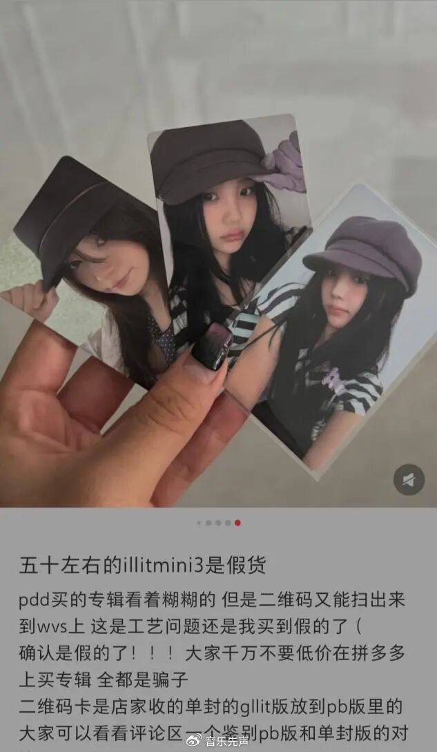 dundun透露道,近期由于ILLIT风评在内地大为扭转,以及《借来的猫》《NOT CUTE ANYMORE》两曲连爆,该支组合过往发行专辑也成为如今的“尖货”,“官方渠道里有些版本都还没有再贩,现在闲鱼上80%拥有货源充足的ILLIT专辑的店铺基本上都是贩卖的假货,而且盗版最低成本都很难有10元,一本假专辑70元,赚回来60元都绰绰有余”。