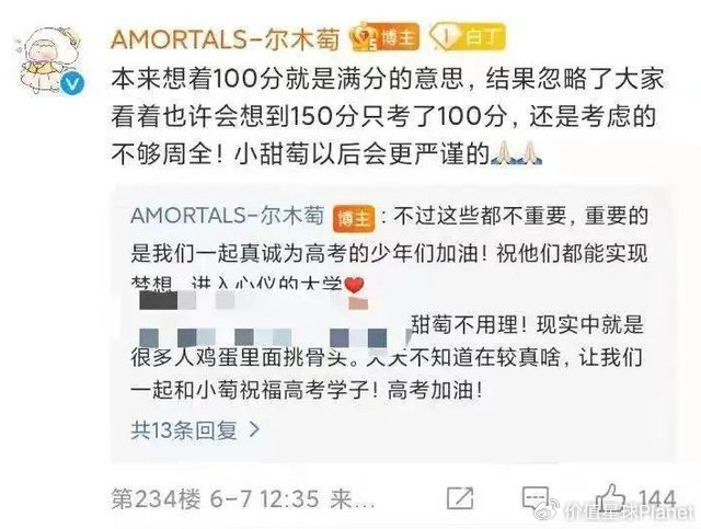 譬如,2022年尔木萄在其官微发布高考营销海报所配的文案“高考加油,100分冲鸭”,就被指“不经大脑”“没有文化”,因为高考语数外单科满分是150分。