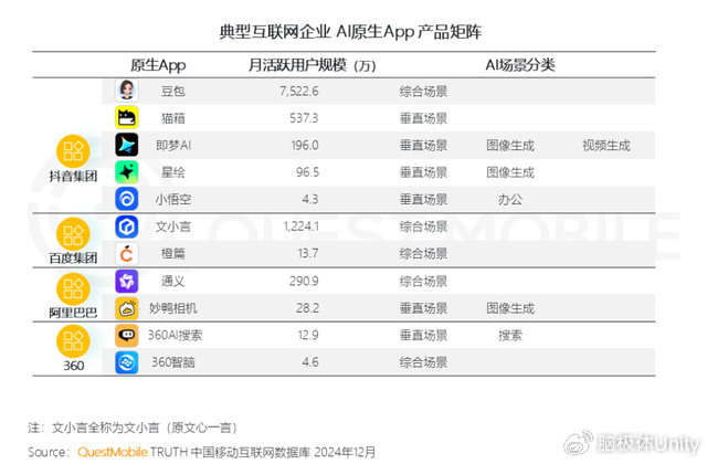 时间来到2024年底,QuestMobile2024年AIGC应用发展年度报告数据显示,豆包月活跃用户已突破7500万。