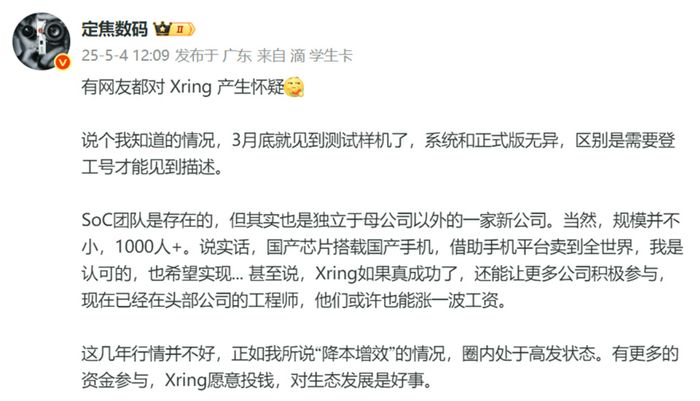 关键除了芯片本身,博主还称研发主体并非小米集团本部,而是独立于母公司以外的一家新公司。