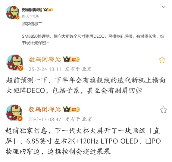关键除了副屏设计之外,核心配置规格也悬念不大,比如会搭载高通SM8850处理器,基于台积电3nm工艺进行打造。