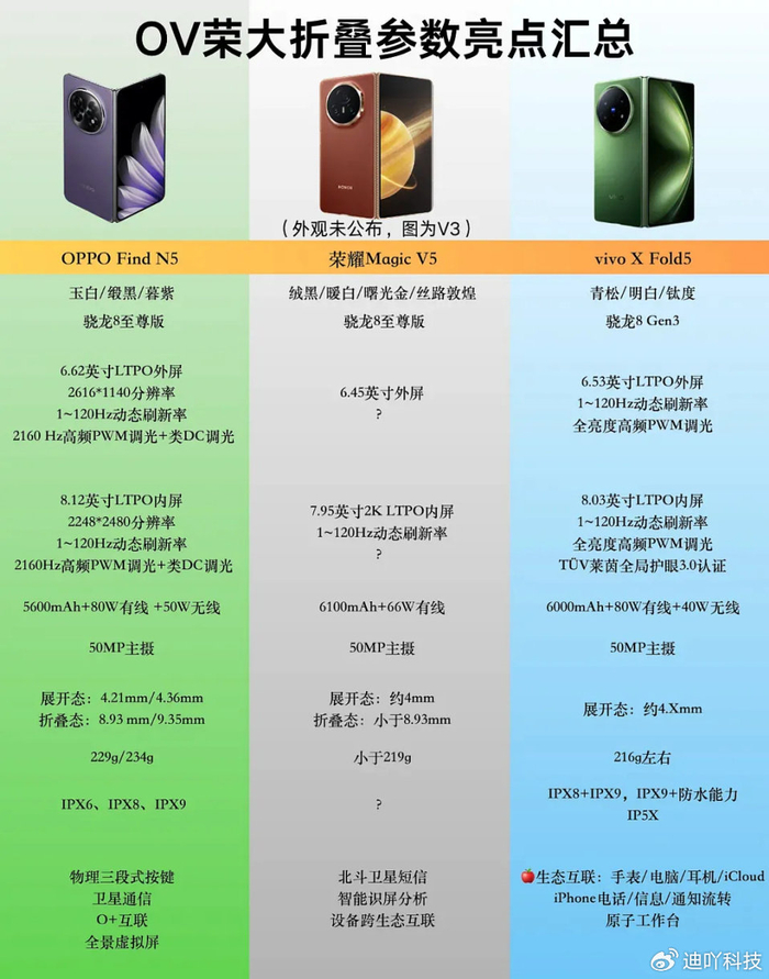 以近期的市场来说,当vivo X Fold 5公布了相关信息之后,没想到荣耀Magic V5带来了更激进的规格信息。