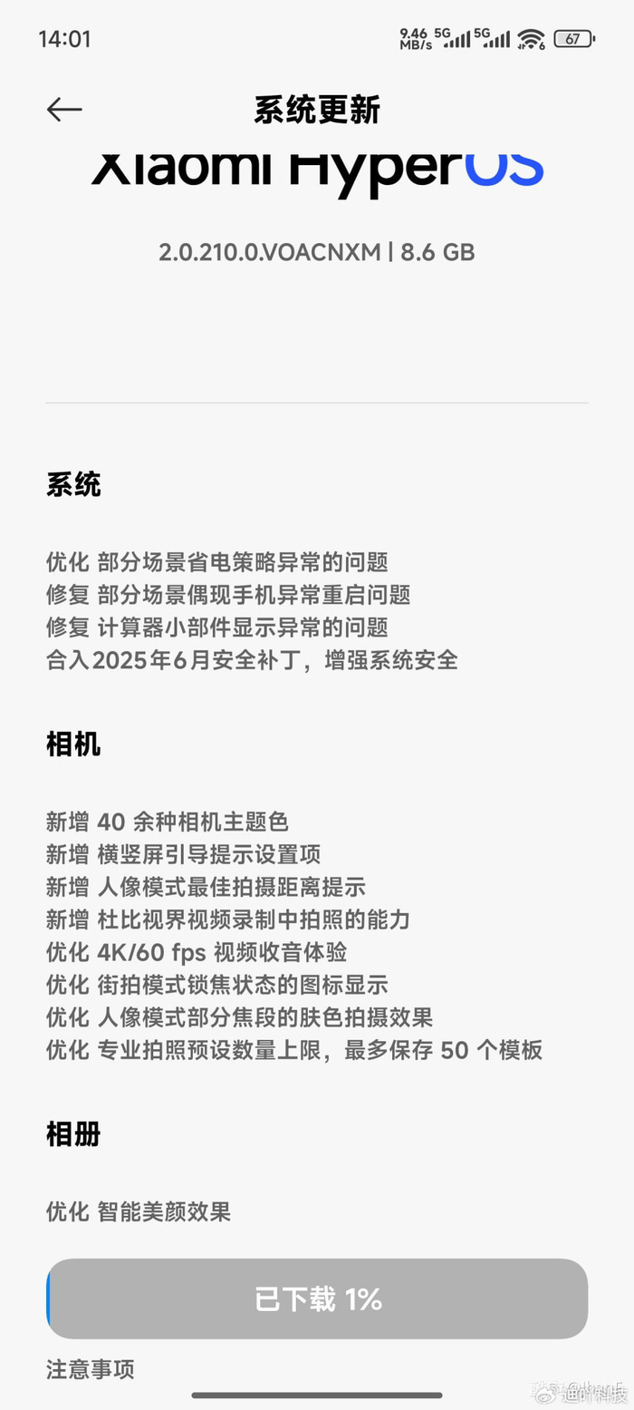 其中小米14收到了OS2.0.207.5.VNCCNXM;小米14 Pro则收到了OS2.0.206.4.VNBCNXM,本次Beta更新虽非正式版,但聚焦于提升核心交互的流畅性与效率。