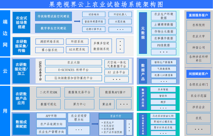 党中央、国务院高度重视农业数字化转型发展。然而当前我国农业科研数据要素供给不足,数字技术与农业产业的融合应用还处于起步阶段,场景碎片化、成果简单化、应用割裂化等问题较为突出,如何释放农业数据价值以及农业科研数据跨域赋能仍是难题。潍坊果壳视界信息科技有限公司研发农业科研数据公共试验服务平台“云上农业试验场”,重点服务涉农高校科研院所等,主要解决农业科研数据供给不足、成果应用转化难等问题,推动农业创新链、产业链和资产链精准对接,在带动农业数字化升级、转型的同时,搭建产学研协作创新共享平台,汇聚农业科研数据,助力涉农数据升级为数据资产。