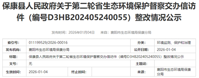 来源:襄阳市生态环境局保康分局