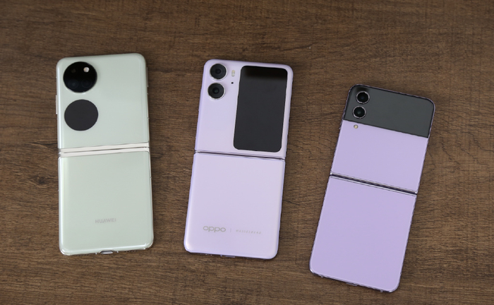 (从左到右分别为:华为pocket S、OPPO Find N2 Flip和三星Z Flip 4)