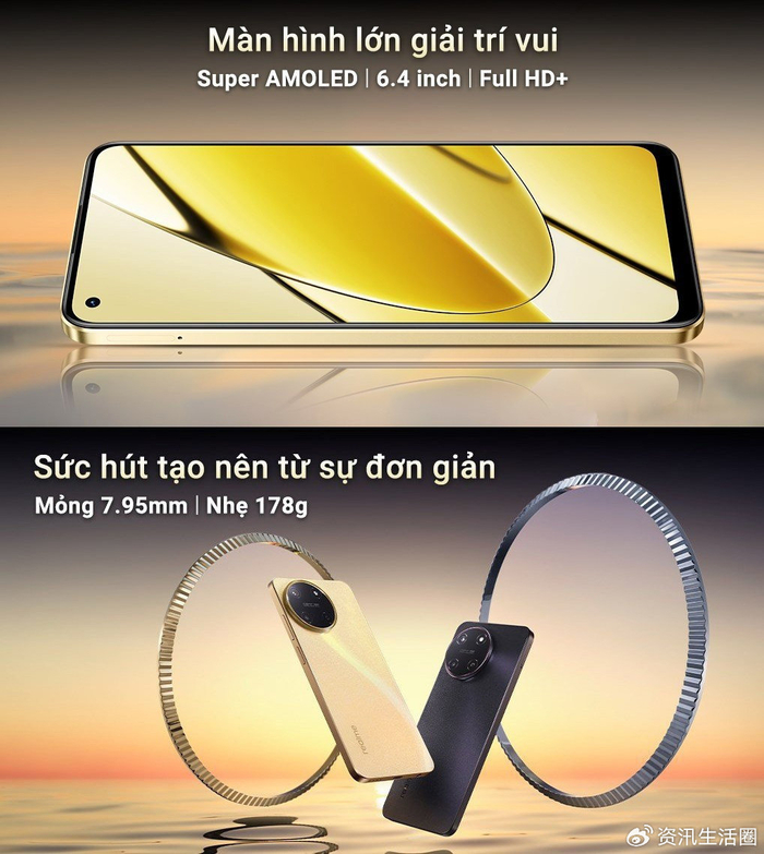 从真机宣传图来看,真我11这款机型虽然在国内也有同样型号,但海外版本的设计确实完全不一样的,它采用了类似于vivo X90和小米Civi 3类似的后置左上角圆形镜头设计,看起来辨识度颇高,另外机身配色也采用了像流沙金一般的感觉,单从图片来看质感还是不错的。