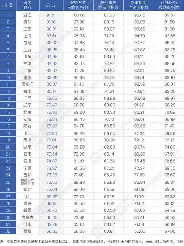 上图为省级政府网上政务服务能力调查评估总排名