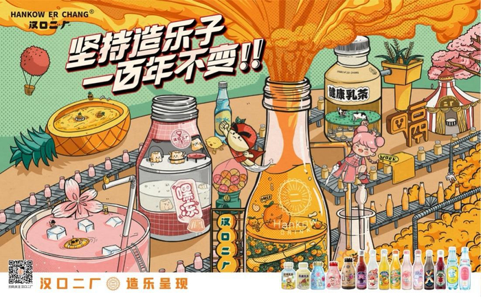 一直以来,汉口二厂总能戳中消费者的快乐开关,用精彩的创意带给大家新鲜感,作为潮饮厂牌,汉口二厂坚持“造乐子”的基因,不断对产品进行迭代更新,同时,从品牌视觉、产品设计和IP跨界等方面发力,注重与用户就国潮、有趣等品牌理念进行沟通,进而增强用户参与感,增加用户粘性。