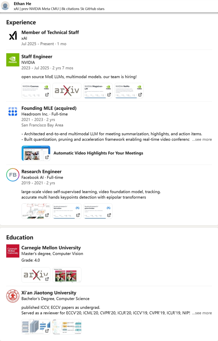 英伟达顶级华人工程师何宜晖(Ethan He)被全球首富伊隆·马斯克挖走,加入了xAI。
