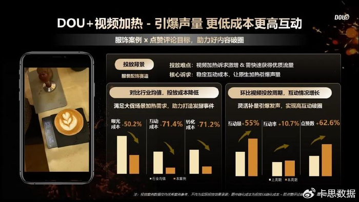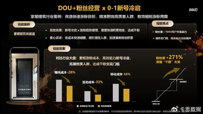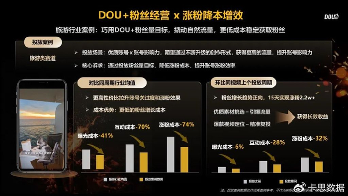 卡思认为,一方面,DOU+能够为创作者提供确定性的曝光,帮助优质内容“破冰”。在抖音庞大的内容生态中,即使内容优质,也可能因为发布时机、初始互动数据不佳而无法进入更大的流量池。而DOU+能做的,就是确保内容能被一定基数的用户看到,从而成功“冷启动”、力争突破自然流量的天花板。