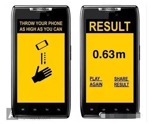 简称SMTH,中文名为送我上西天。玩法很简单,把你的iPhone尽可能往空中抛,S.M.T.H会记录下你抛起的高度,谁最高谁就赢。而且,最后的成绩还会加入到一个全球性的排行榜中,刺激你将iPhone越抛越高。友情建议大家买过新手机之后再用旧手机玩儿这个哟~你要是土豪就当我没说,预备!扔!跑、跑、跑、快跑~~