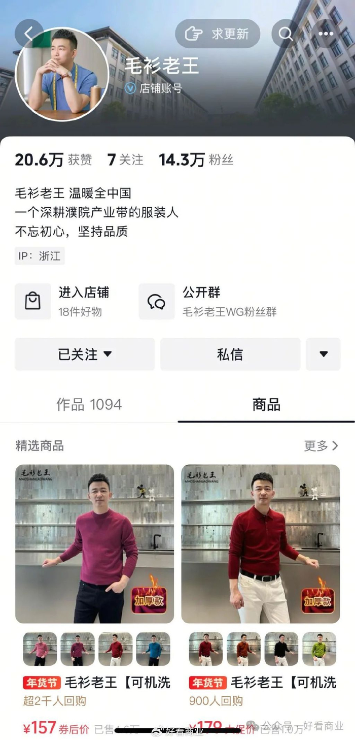 回到毛衫老王,其产品力和效率不仅得益于创始人和企业自身的优势,还得到了背后濮院产业带和直播电商的助力。