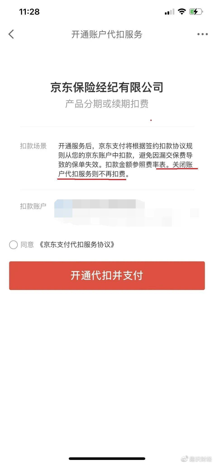 例如,京东金融APP上就月付保险产品续期扣费,也直接“帮”消费者选择代扣服务。