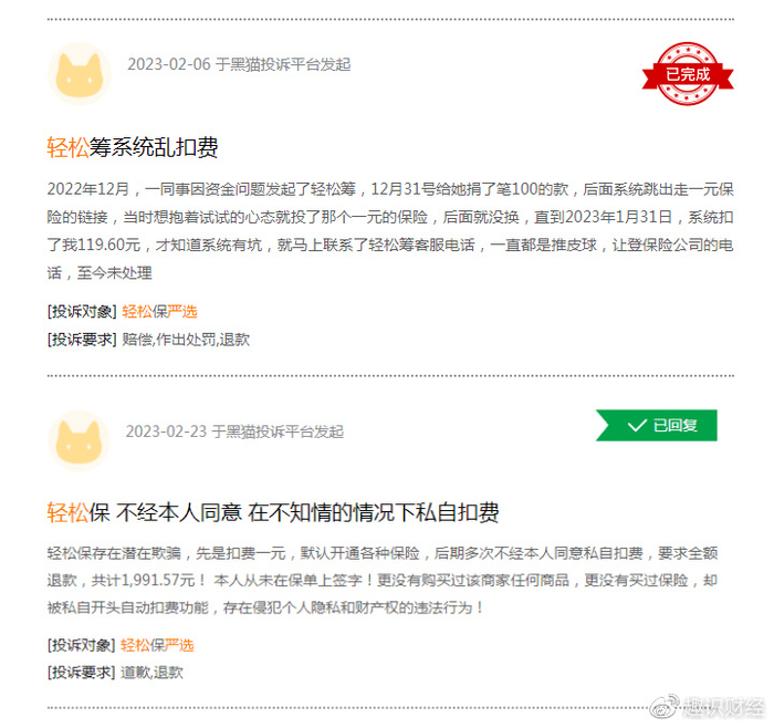 黑猫投诉[下载黑猫投诉客户端]平台上,很多消费者投诉称,被保险平台“1元保险”“免费送保险”等广告所诱导,并在不知情被开通自动续费,从次月起每月支付百元保费,甚至发现时已缴纳数月保费。