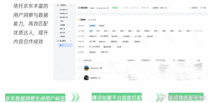 京腾优选的解法很清晰:先借助京东积累的庞大消费数据,细化用户标签,帮品牌精准锁定目标人群;紧接着发挥腾讯广告如翼平台的能力,在腾讯广告内容生态中智能筛选出调性相符的优质创作者。一前一后,就把选号变成了一盘活棋,高精准账号池的形成也就水到渠成。