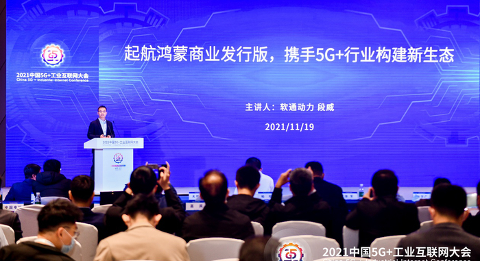 软通动力鸿蒙业务发展部总经理段威带来“起航鸿蒙商业发行版,携手5G+行业构建新生态”主题演讲,表示软通动力是HarmonyOS研发和技术的提供者,OpenHarmony生态建设者,HarmonyOS Connect全场景生态卓越合作伙伴,已与各行业100余家设备厂商建立了生态业务合作,涵盖智能家居、运动健康、智能出行、办公教育、影音娱乐等领域。基于OpenHarmony数字底座,软通动力将全力投入鸿蒙业务,探索OpenHarmony商业发行版,结合5G、云和行业场景特性,推动行业生态发展,共同打造鸿蒙万物互联的世界。