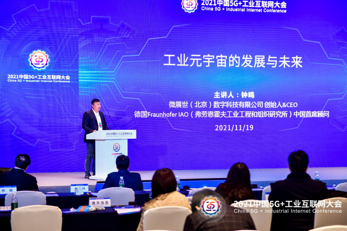 微展世CEO/创始人钟鸣以“工业元宇宙的发展与未来”为题发表演讲,指出第四次工业革命正在创造一个线下和线上相遇的融合世界,2021成为“元宇宙”的爆发元年,工业领域也将实现与“元宇宙”的深度融合。