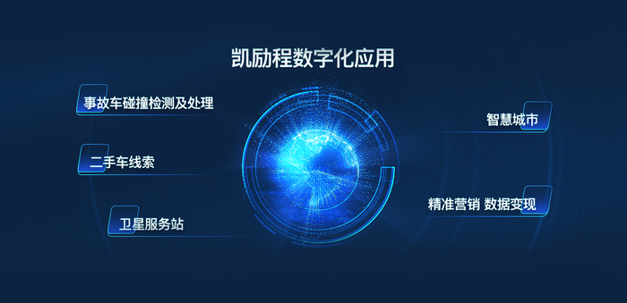 基于此,在这个生态里面,凯励程开发了针对汽车经销商数字化转型的解决方案,其中包含了五大应用,即事故车碰撞检测及处理、二手车线索、卫星服务站、精准营销和数据变现以及智慧城市。