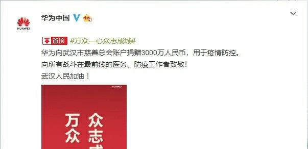 除了国内巨头企业,也有很多来自国外的巨头开始捐款,比如大家最熟悉的苹果公司,不过这时候很多人就把目光放在了华为,华为毕竟是全球最大5G巨头,同时手机业务已经成为国内第一全球第二,然而华为跟进的动作很慢,因此被吐槽。那么华为真的比其它巨头慢了一步吗,然而根据官方消息来看,原来华为被误会了。