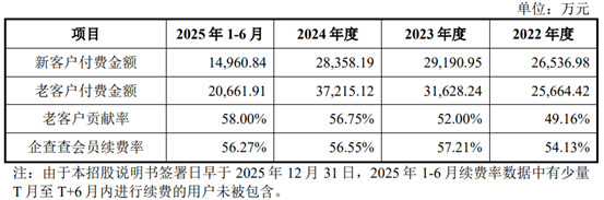 此外,尽管企查查的老客户贡献付费金额及贡献率稳步提升,但2024年公司的新客户付费金额、企查查会员续费率均同比下降。
