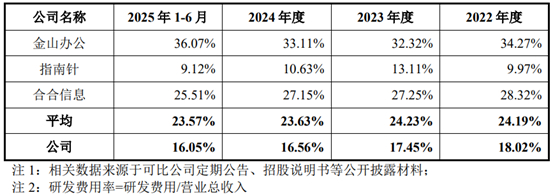 公司研发费用率与同行业可比公司对比情况,图片来源于招股书