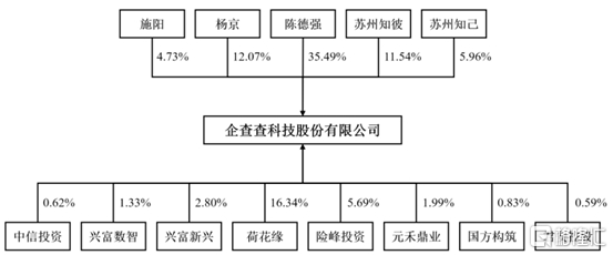 本次发行前,陈德强直接持有企查查35.49%的股份,并通过苏州知彼、苏州知己间接控制公司股份,合计控制公司53%的股份,为控股股东、实际控制人。