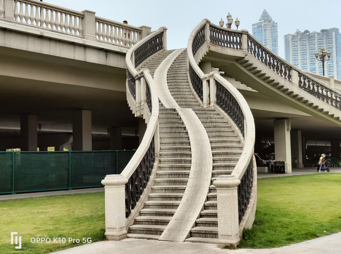 白天室外拍摄,从样张来看。OPPO K10 Pro的主摄解析力优秀,楼梯的材质以及草地的纹理都清晰可见,线条锐利。另外OPPO K10 Pro的算法令样张的颜色更具张力,虽然和肉眼有所出入,但整体观感也更为讨喜。