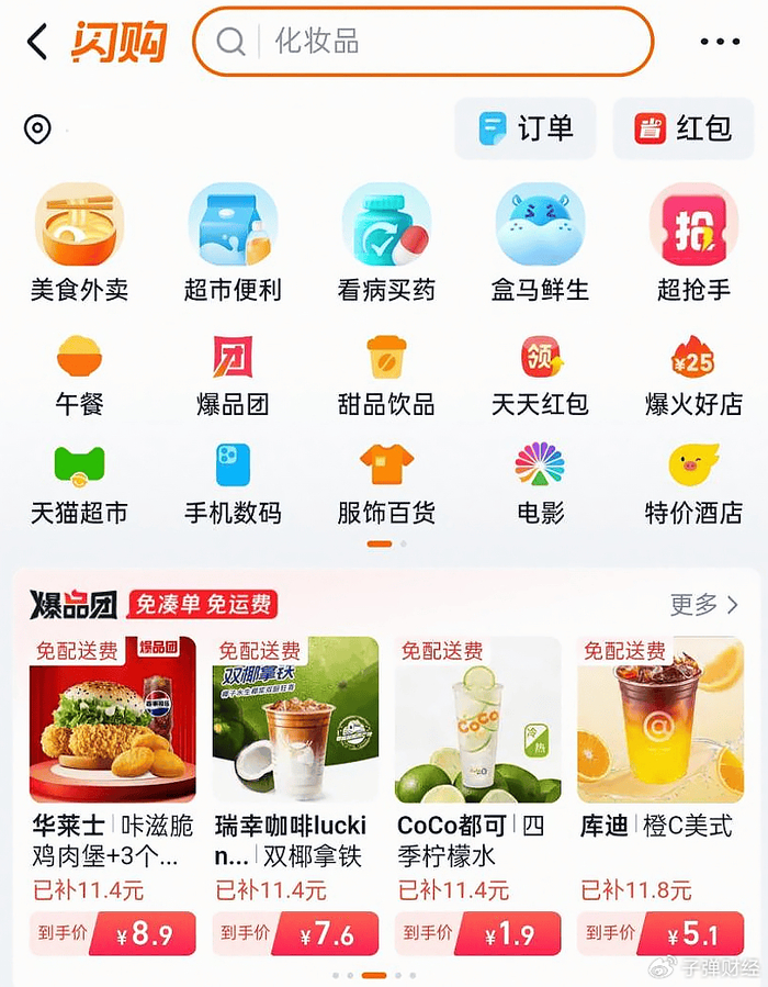 也就是说,用户的即时消费需求正在升级,不再满足于“小金额、随手买”,而是把更多价值更高、需求更确定的品类放到闪购上,比如正餐、生鲜、家清日用、母婴、个人护理,甚至是小家电、美妆等原本不属于外卖的品类。