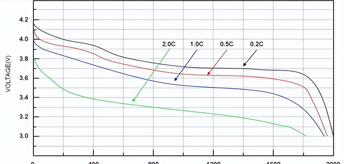 3.6V 时,红色那条已经放了1500mAh,剩余电量不是50%,是25%!放电的电流对电池能放多少电也是有影响的,图中不同颜色的线对应的就是放电电流大小,放电电流越大,电压下降越快。