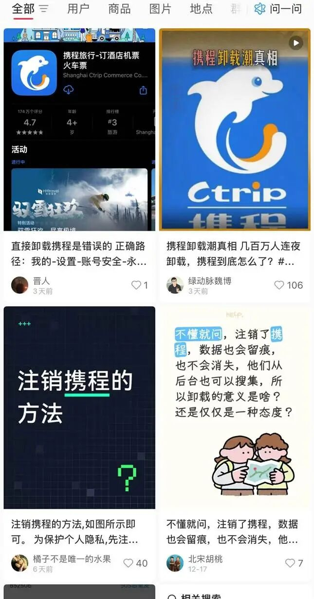 在微博、小红书、朋友圈等平台,大量用户晒出“账号注销成功”、“卸载携程”的截图,并明确写下理由——“不想和高风险目的地扯上关系”、“担心信息安全”、“不想接到诈骗电话”。也有自媒体报道称,携程与柬埔寨旅游局签约后48小时内,卸载量激增,注销按钮被点击300万次。但这一数据来源未得到任何官方或权威渠道验证。虽然过于夸张,但从社交媒体用户的反应看,携程此次确实激起了众怒,消费者的情绪已经越过了临界点。