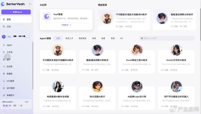 值得一提的是,在BetterYeah平台里被推荐配置的岗位角色不是通用的文档分析、合同审核等等,而是真实存在于企业业务流程中的岗位角色,如店铺数据分析师、销售AI助理、客户挖掘助理、招聘助手等等。