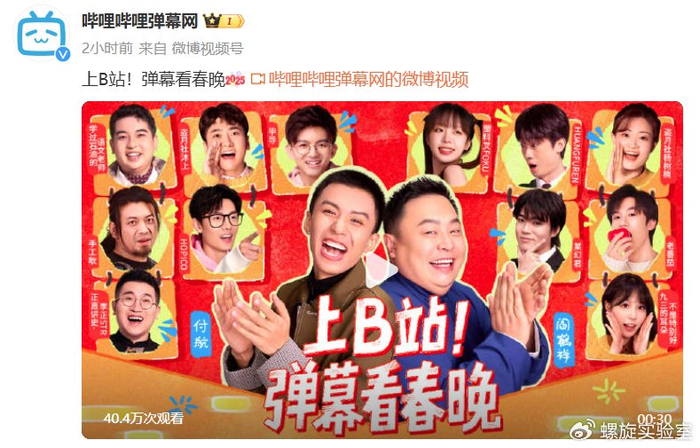 1月9日,哔哩哔哩(下称“B站”)宣布与中央广播电视总台《2025年春节联欢晚会》达成合作。