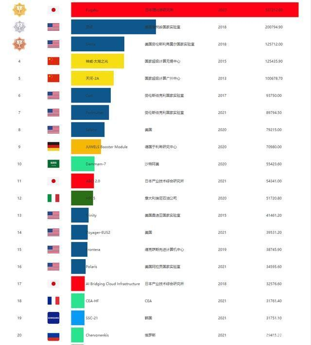 而昔日在2013到2017年接连斩获全球第一的国产超算——“神威·太湖之光”则排在了世界第四的位置,这让人略感遗憾。