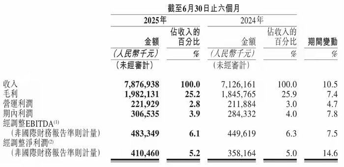 2025年上半年,毛利为19.82亿元,较上年同期的18.46亿元增长7.4%;毛利率为25.2%,对标3年前提升7%,抛开从亏损到盈利的转变不谈,盈利能力有所改善。