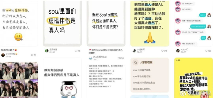 虚拟伴侣是最近一年AI落地最热门的应用方向之一。不过“趣解商业”也注意到,关于Soul的虚拟伴侣,不少用户质疑其有“真人参与”以及诱导消费。有用户表示,从AI伴侣的对话里确信有真人客服的参与,还有用户直言,曾被AI伴侣索要照片,被Soul的“屿你”邀请至杭州东站赴约。