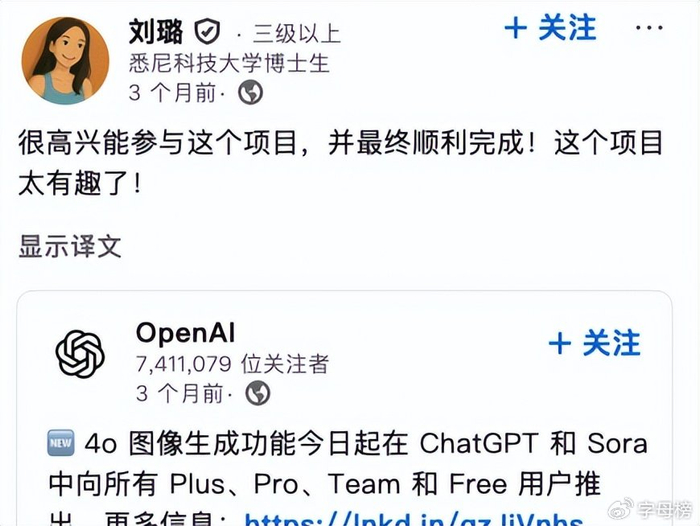 在离开OpenAI之前,她是4o图像生成团队的一员,经常在X和领英上分享和4o图像生成相关的内容,对工作表现出极大的热情。