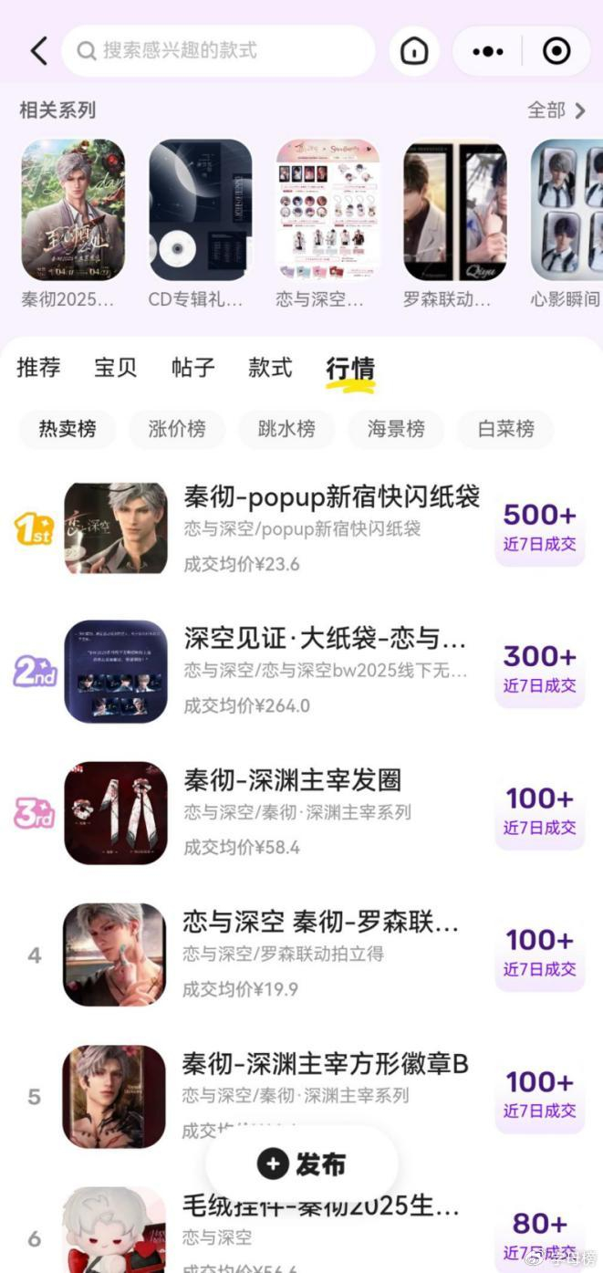 随着国产动漫、游戏产业的崛起,大量优质国谷涌入市场。2025年第一季度,闲鱼数据显示国产 IP 谷子交易额达到日谷的 1.2 倍 ,《恋与深空》《第五人格》等国产游戏谷子销量登顶,超越《排球少年》《蓝色监狱》等日谷“顶流”。