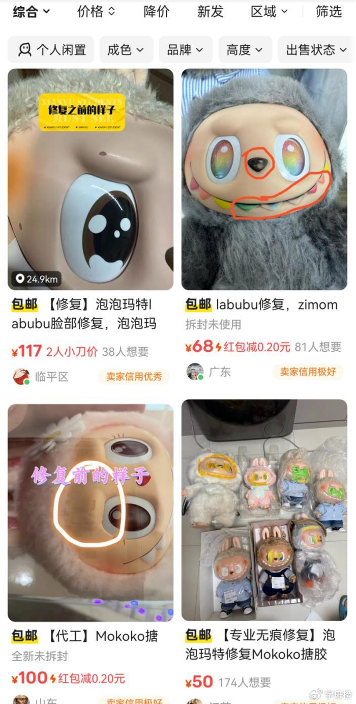同好通过交易扩列,让分散的微小兴趣聚在一起,有了成为消费潮流的可能。而交易带来交流,交流中又会冒出新需求,转化成更多消费。第一个想到给娃娃做“医美”的玩家晒出了自己的作品,转化了众多LABUBU爱好者,于是LABUBU医美成为了兴趣衍生交易的新风口。随后箍牙、形体美容、定制娃衣等衍生服务也在闲鱼上由用户们发起、展开,并逐渐形成规模。