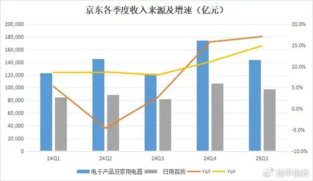 可以说,和国补几乎毫无关系的日百,反而是过去一年在大部分时候都增长良好的品类,只不过在国补加力的24Q4和25Q1稍逊于家电3C品类。这种情况显示出消费者对京东的信任正在随着国补加码而回归,这家公司正在重拾高速增长。
