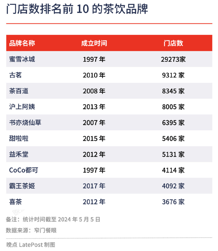 据窄门餐眼,仅 2023 年,霸王茶姬新增门店 2317 家,这一数字是其过去五年开店数总和的 3 倍之多。截至目前,霸王茶姬全球门店数量超过 4000 家,在全行业排名第九,其中海外门店数量超过 100 家。