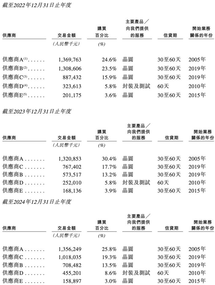 2022年、2023年、2024年,兆易创新向五大供应商的采购额分别占其相应期间总采购额的73.4%、71.0%、70.2%。
