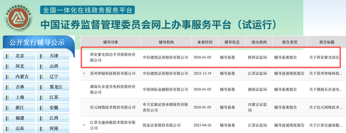 芯东西1月6日报道,1月5日,西安存储芯片供应商西安紫光国芯半导体股份有限公司在陕西证监局办理上市辅导备案登记,启动北交所IPO进程,辅导机构为中信建投证券。