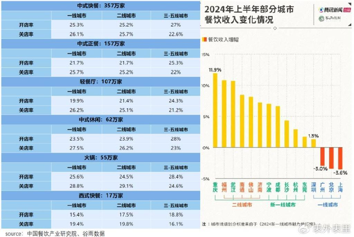 数据显示,2024年一线城市餐饮门店减少了5.5%,而三至五线城市恰好增长了5.4%,收入规模也是逆势增长。