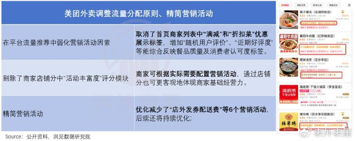 比如,取消首页商家列表中“满减”等优惠展示标签,增加“随机用户评价”等反映消费者认可度的标签。这意味着,首页不再只是商家买流了才推荐,只要品质好也会被推。