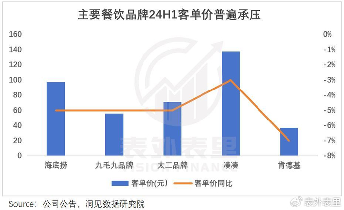 而商家对这一风潮也是“打不过就加入”。近两年,餐饮新开门店大幅增加导致供给过剩,单店客流分流严重,商家不得不“拥抱”低价来招揽消费者。如下图,海底捞、九毛九们的客单价普遍下滑。