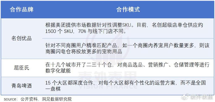 此外,其还与名创优品、屈臣氏等品牌零售商联合开仓,但不是“无脑”联合,比如美团发现某地铲屎官分布密集,就会让商家多上架宠物用品。